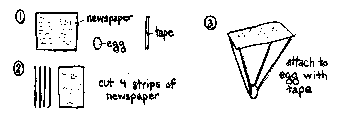 I hypothesize that a parachute design will protect the egg from breaking in the fall. This design will have four long thin strips of paper attached to the remaining four corners of the newspaper and then to the egg.
