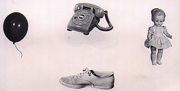 This is an example of a RECEPTIVE CONCEPTUAL task in the Visual Modality. Please note that the instructions must be given prior to testing the child or adult. This is done through pantomime and/or by simple modeling. This is necessary, of course, because we do not know before we test what the child's ability is to understand langauge.