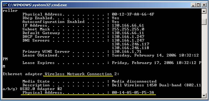 When the DOS window opens, type ‘ipconfig /all’ at the prompt