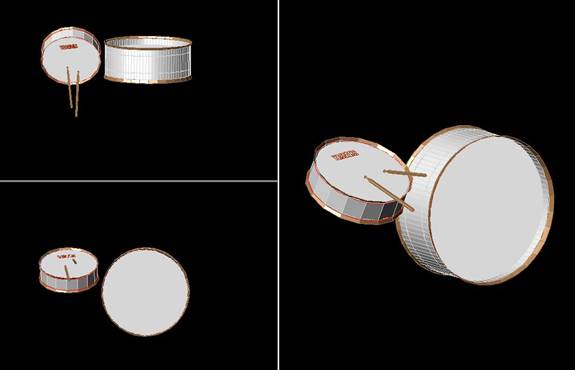 Orthographic Views of the 3D AutoCAD Model of the Acoustic Drum Set