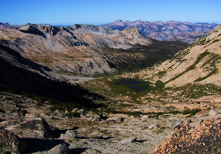 The view over the ridge. Off, far in the distance is Tuolumne meadows. |