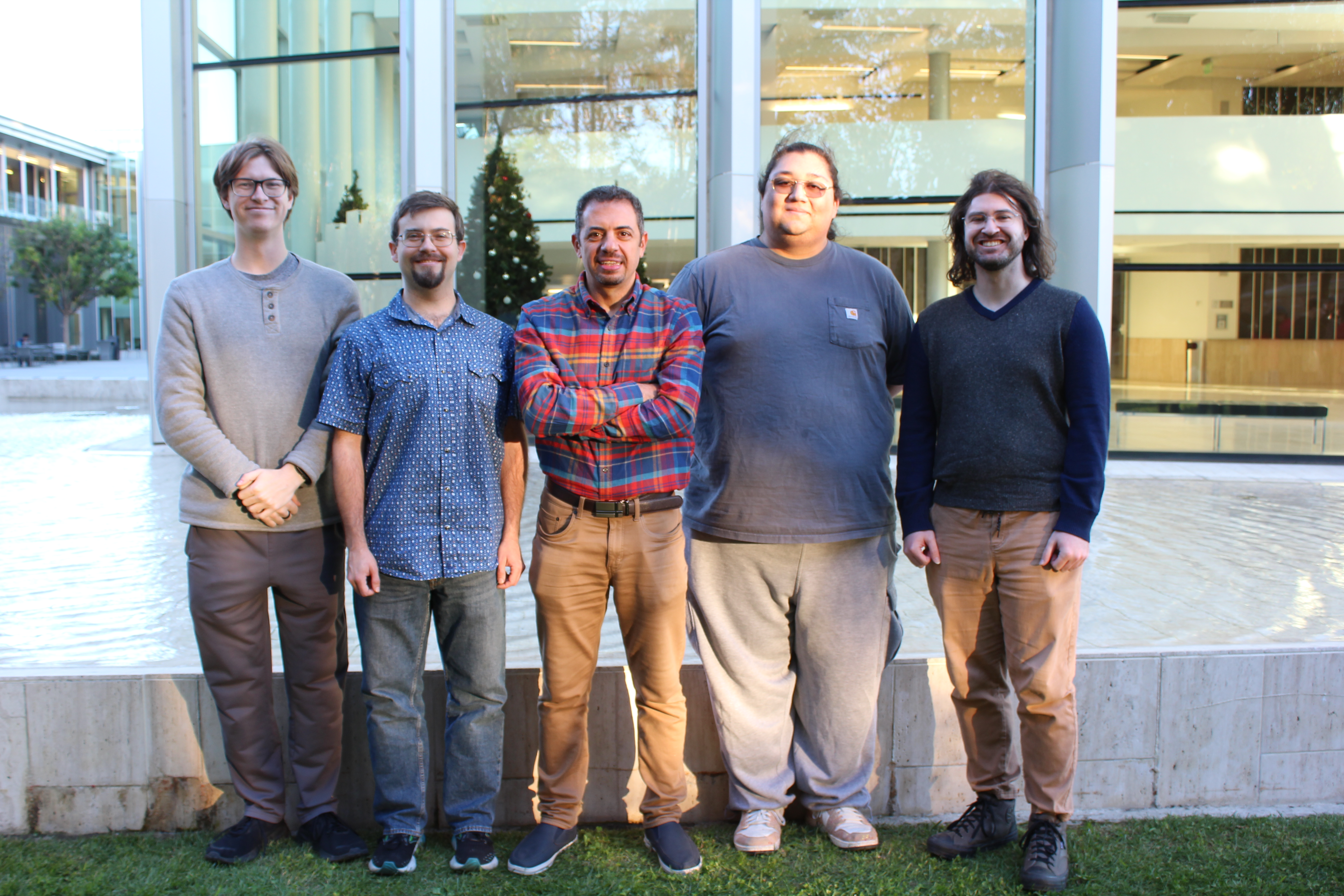 Graduate students from left to rgiht: Andrew Theodore, James Martinez, Julian Rodriguez, Arshak Amirbekyan, and Christian Aguilar.