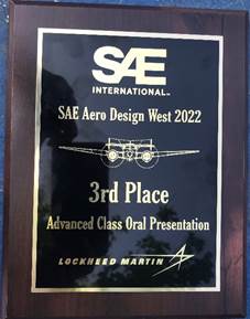 1st Place- Poster Presentation, Aero Senior