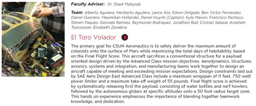 challenging class. CSUN Aero team got 4th place in Technical Design