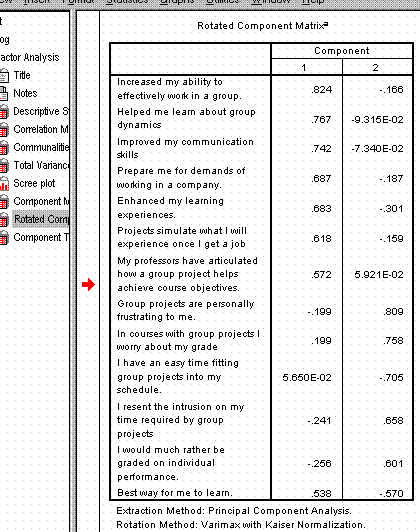 the FACTOR LOADINGS for each item. A factor loading is an index