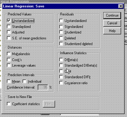 Select Unstandardized Predicted Values to be saved.