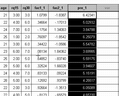 Notice that the Unstandardized Predicted Value has been saved to your data file (your ".sav" file). In this example, this is your newly created "Satisfaction Index Score."