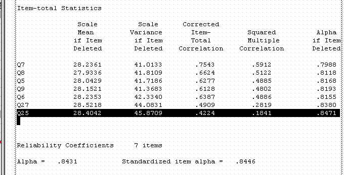 is reliable at .84, but notice that Coefficient Alpha can be increased