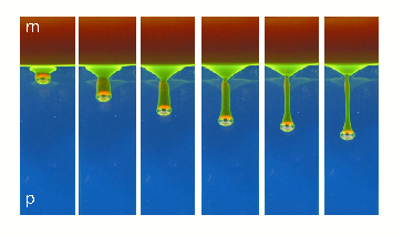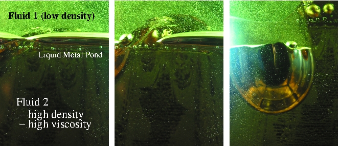 When a metal instability begins, it quickly forms a diapir due to the high density