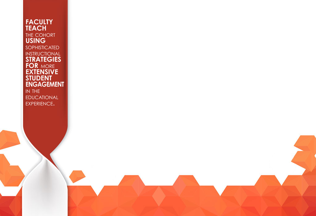 in this master’s degree become components of the overall program’s larger educational purpose and learning goals. Faculty teach the cohort using sophisticated instructional strategies for more extensive student engagement in the educational experience because program participants and faculty take an educational journey together from the start to the end of the program.
