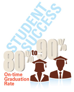 With its fully online master’s degree programs, the university’s record of student success continues, with on-time graduation rates of exceptionally high levels – well above national average, with most at or above an 80% on-time graduation rate, and some reaching over 90%.