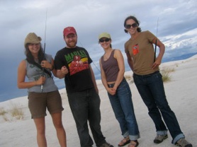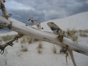 Postdoctoral research with Erica Bree Rosenblum focussed on sexual selection and rapid diversification of three species of lizards at White Sands National Monument. White Sands is a geologically recent formation (~ 6000 yrs) that encompasses 275 square miles of stark white gypsum sand dunes. Multiple species, including lizards, mice, insects and small mammals, have colonized the sand dunes from the surrounding desert scrub of the Chihuahuan desert in southwestern New Mexico, USA. Our focal taxa are three lizards: the Western Fence Lizard (Sceloporus undulatus), the Lesser Earless Lizard (Holbrookia maculata), and the Little Striped Whiptail (Aspidoscelis inornata). All three species exhibit blanched dorsal coloration, presumably for cryptic background matching, whereas lizards in the surrounding desert are dark in coloration. Combined with evidence for ecological divergence, differences in social signal coloration in all taxa indicate that both sexual and natural selection processes could mediate rapid ecological speciation in this system.