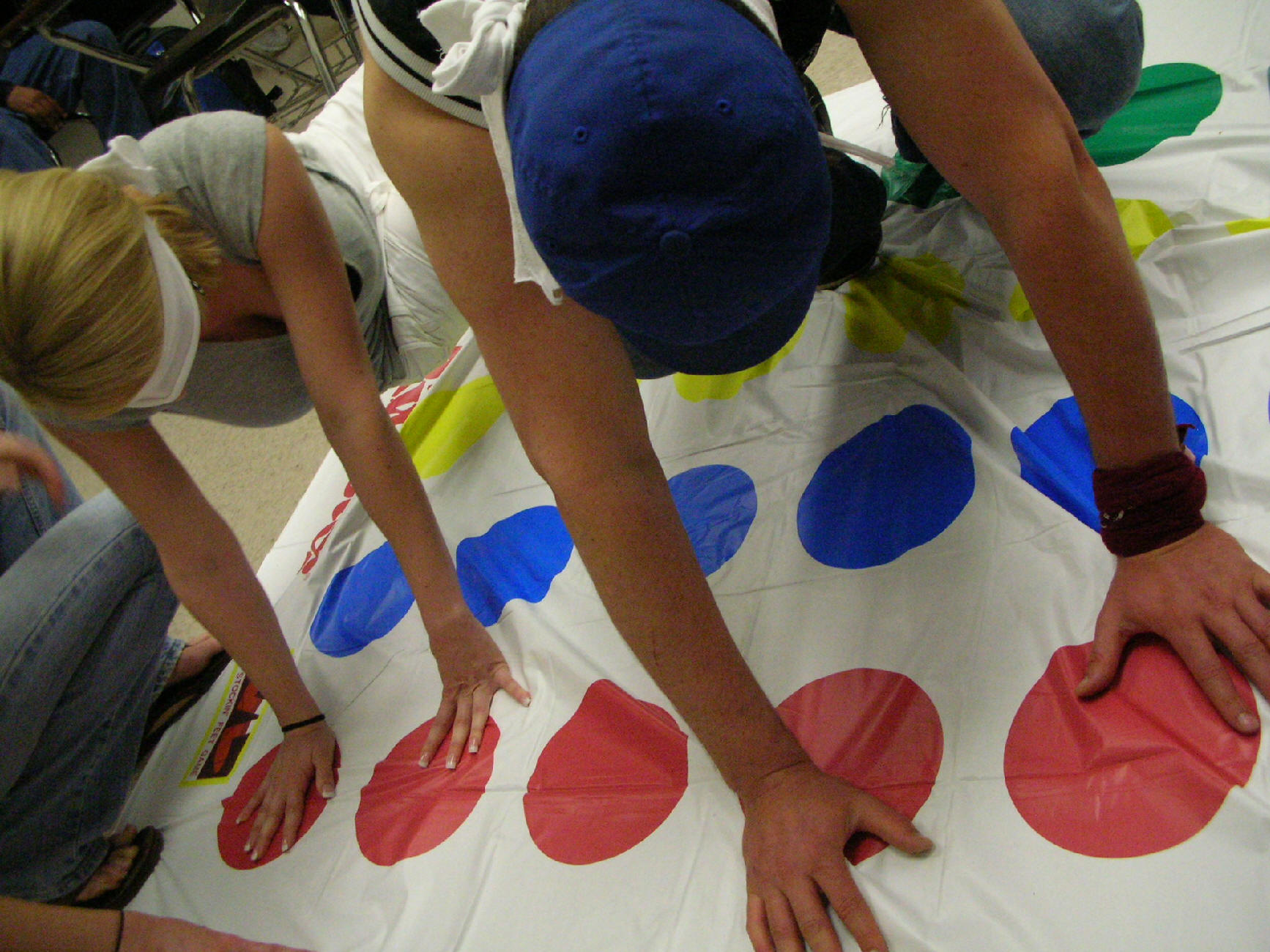 *The background consist of the twister game. There are circles with the red, blue, yellow and green color.