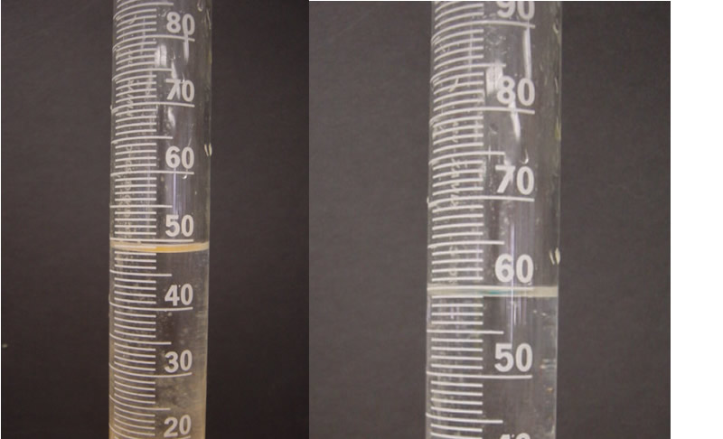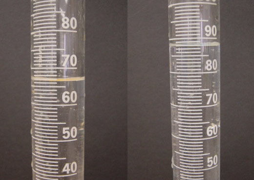 These are the results of measuring the mass and volume of one half of the clay ball. | ||