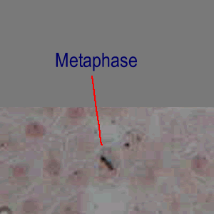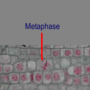 The chromosomes should line up at the 'equator' of the cell during this phase. It may take a little time to get used to what being 'in line' may mean, particularly in the onion root slides, Think of the centromeres of each chromosome being in a relative line while the ends of the chromosomes are dangling about. |