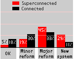Connected and freeDigital Citizens are markedly libertarian - they have much more confidence in the ability of business and individuals to solve problems than in government. Strong majorities of both the Connected and the Superconnected - 55 and 59 percent respectively - believe that Internet users should be allowed to police themselves rather than be subjected to regulation by the federal government. Perhaps because so many of the Connected live, work, play, and communicate in a culture with few taboos and restrictions, they value freedom of thought much more than the Unconnected.Digital Citizens' political values draw heavily from the humanism and social tolerance of the left, but they dispute the view that government is both primarily responsible for and effective at confronting and solving social problems - a cornerstone of both the Democratic Party and the ideology we've come to call liberalism. Personal responsibility is a powerful idea in the online world - a notion that meshes closely with the survey's findings that Connected Americans believe in democracy, but not necessarily in the ability of government to solve social problems. Their passion for individual responsibility and market forces suggests the ideology of the right. More than 90 percent of them expressed confidence in the workings of the free market. But they are not "uppercase" Libertarians. When asked to choose, slightly more Connected Americans label themselves as Republicans than as Democrats, but many choose neither. Nineteen percent describe themselves as "strong" Republicans, and 21 percent say they are "weak" Republicans. In the same group, 15 percent see themselves as strong Democrats, and 18 percent as weak Democrats. Meanwhile, 20 percent of the Connected prefer to call themselves independent. This is a group that thinks for itself and decides issues one by one, instead of following a strict ideology or platform. In a nod to conservatives, nearly half of Connected Americans believe the Social Security system requires "truly major reform," and more than three-quarters support the death penalty. But in sympathy with liberals, more than half believe it's possible to cut military spending by a third and still maintain current levels of national security, and an amazing 71 percent support the legalization of marijuana for medical use. Connected Americans are also family-centered, with strong connections to other people - 56 percent of them would agree to give up a day's pay each week if that meant they could spend one more day at home with friends and family. Despite their technological savvy, Connected Americans still prefer the familiarity of a human voice: overwhelmingly, they said they would prefer to relate good news to friends and family via telephone rather than via email. The postpolitical flexibility
